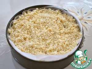 Для этого просеять муку и перемешать с кокосовой стружкой, сахаром, добавить нарезанное кусочками масло. Перетереть массу руками или с помощью двух вилок до состояния, похожего на хлебные крошки, удобнее воспользоваться миксером с венчиками для взбивания. -
