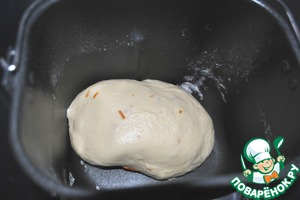 В теплое молоко высыпаем дрожжи и даем постоять 5-10 мин, до растворения дрожжей. Дальше загружаем все ингредиенты в ХП, согласно вашей инструкции. Выставляем программу замес. Муку всю сразу не сыпем, т. к. ее может уйти меньше или больше и оставляем на 40-50 мин. до увеличения теста в 2 - 2,5 раза. -