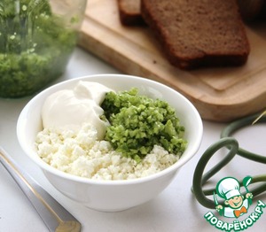 Попробуйте приготовить вкуснейшую намазку. Произвольно объедините три ингредиента: творог, сметану и готовую чесночную пасту.