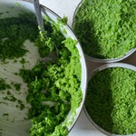 Сложить в чашу блендера, добавить по вкусу крупную морскую соль, кориандр, растительное масло и пробить блендером.