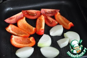 Далее жарим помидоры, лук и перец, по необходимости смазываем сковороду маслом.