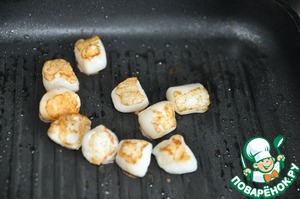 Если у вас нет гребешка, то можете взять кальмара, почистить, нарезать на кусочки и готовить дальше так же по рецепту. -