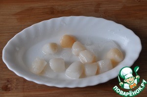 Замороженному гребешку даём самопроизвольно оттаять.