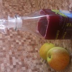 Через двое суток процеживаем уксус в стерильную посуду. (жмых с косточками выбрасываем). На фото у меня две порции.