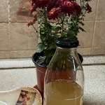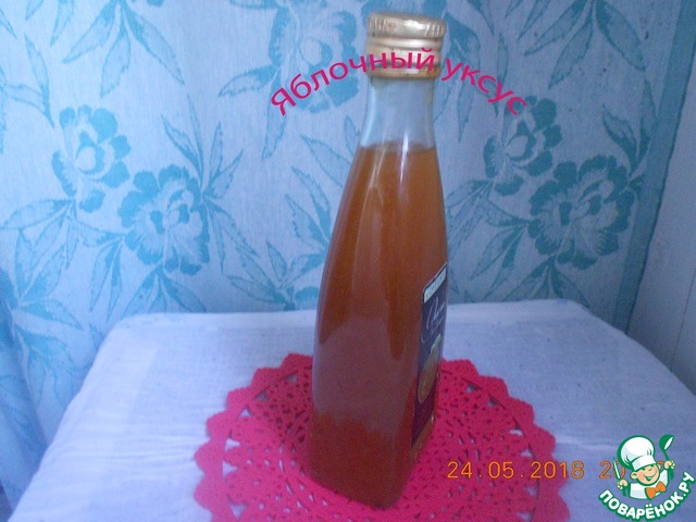 На фотографии уксус, сделанный в прошлом году на основе сорта яблок "антоновка", а вообще этот уксус можно готовить из разных яблок, начиная с белого налива. Уксус, в зависимости от сорта яблок, получается разным по вкусу. Особенно сладковатый вкус получается из сорта розовый налив, штрифель, титовка.