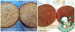 Готовые и остывшие бисквиты разрезать пополам горизонтально.