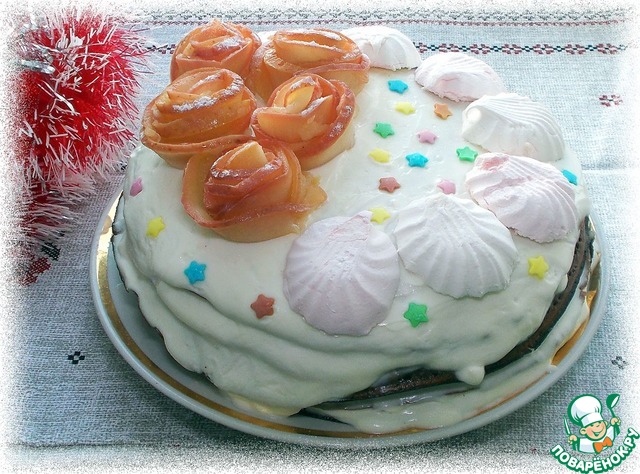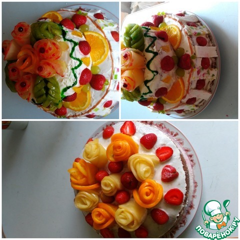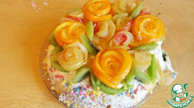 Рецепт «Торт "Именинный" с фруктовыми розами»: