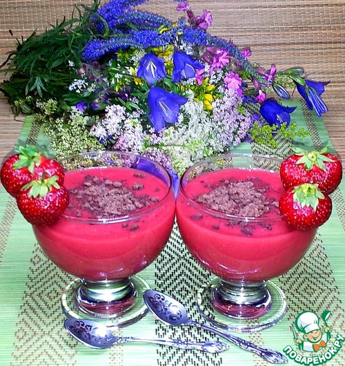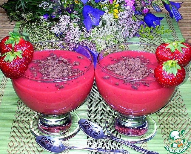- Сок свежевыжатый (клубничный с мякотью) — 500 мл