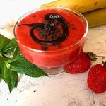 Густой смузи из спелых бананов и сочных ягод клубники. Этот смузи через соломинку не потянешь и без ложечки не обойтись...