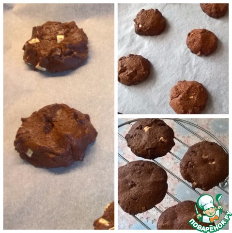 American double-chocolate cookies. Рецепт до безобразия прост, однако из множества опробованных рецептов такого печенья, этот оказался самым удачным по вкусовым и внешним характеристикам. Спешу с вами поделиться. Это мой первый рецепт на сайте, поэтому будьте строги по всем параметрам :)