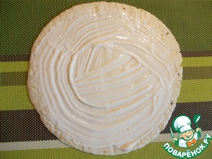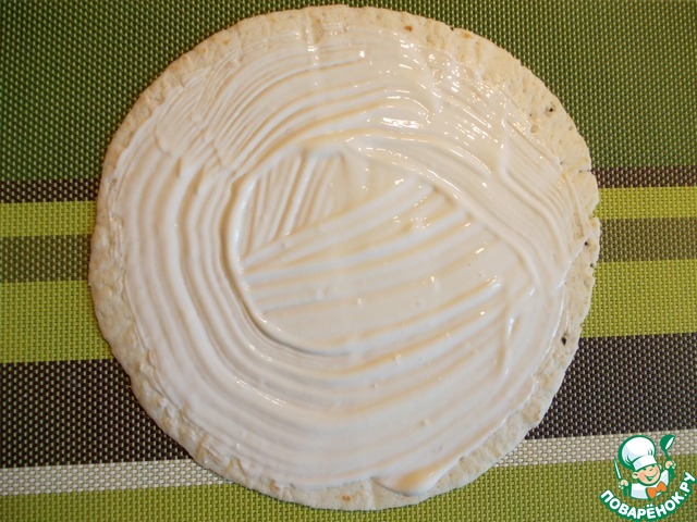 • Лаваш (или тортилью) смазать сметанным соусом.