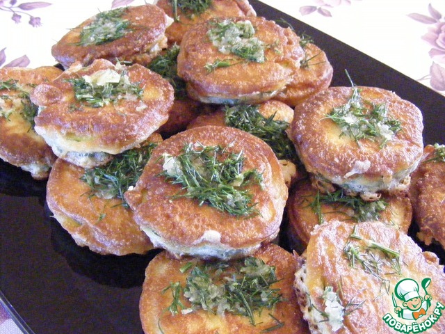 Сразу обвалять в муке десяток-два кружочков, не окуная в кляр. Потом на разогретую сковородку залить кляр, чтобы получился такой себе "блин" на всю сковородку и немедленно выложить на него кружочки по всей площади. Залить сверху немного кляром. Накрыть крышкой, когда снизу поджариться и сверху чуть схватиться - перевернуть.