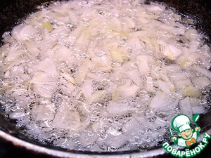 Лук режем мелко и обжариваем на смальце. Лук, печень и чечевицу прокручиваем на мясорубке.