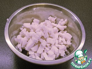 Сало режем кубиками (5х5х5 мм) и добавляем к фаршу.