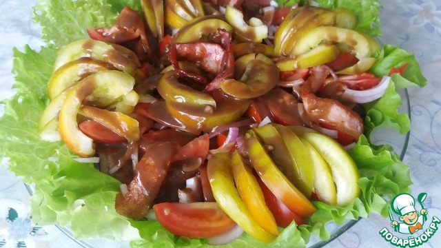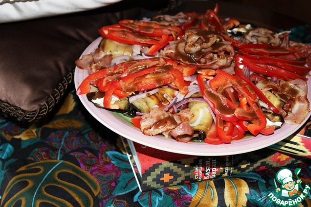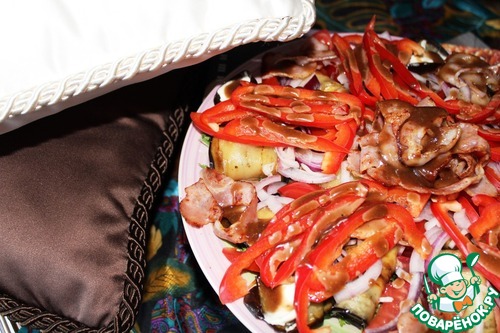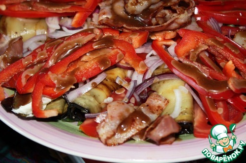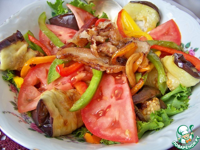 Название придумала не сама, родственники назвали, хотя какой бекон на востоке, но спорить не стала. Свежие овощи прекрасно сочетаются с обжаренными баклажанами и беконом, а пикантная заправка все соединяет и украшает.