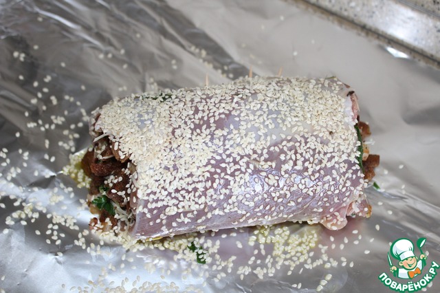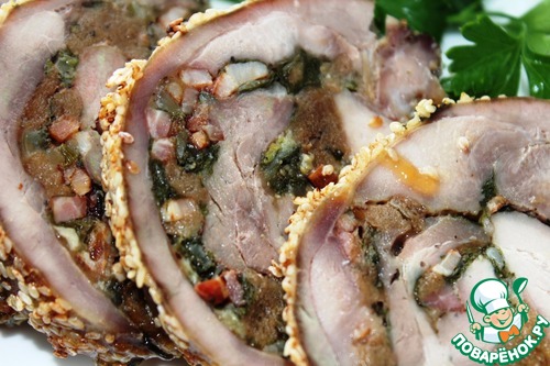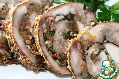 Рецепт «Голень индейки, фаршированная беконом и хлебом»: