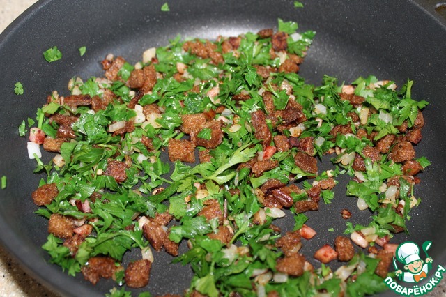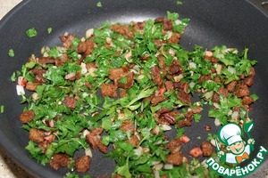 • Затем в сковороду зелень, все перемешала и сняла с огня.