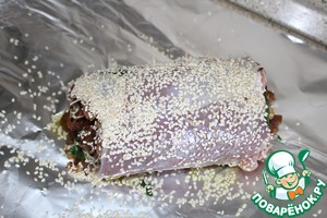 • Сворачиваю рулетом и скалываю. Рулет сразу размещаю на фольге.