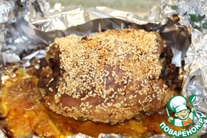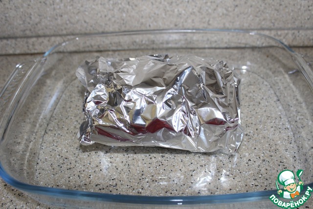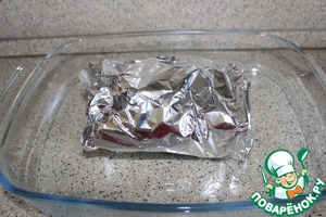 • Заворачиваю в фольгу, в жаропрочную посуду и в разогретую до 180 град. духовку на полтора часа.