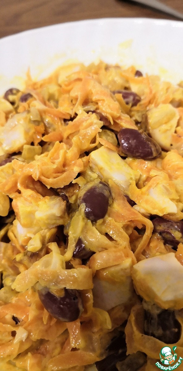 Рецепт «Салат с фасолью и копченой курицей»: