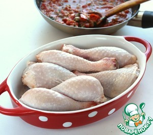 Выложить куриные голени в жаропрочную форму.