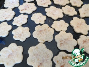 Затем с помощь формочек (можно использовать стакан) выдавливаем печенье. -
