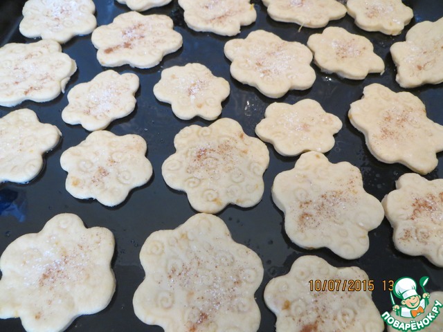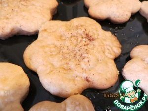 Выкладываем на смазанный растительным маслом или маргарином противень. По желанию можно посыпать сахаром, кокосовой стружкой, корицей, что придаст печенью нарядный вид. Отправляем в духовку, разогретую до 180 градусов на 20 минут.