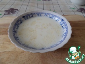 • В чашку кладем 1 ст. л. желатина и заливаем молоком. Оставляем для набухания.
