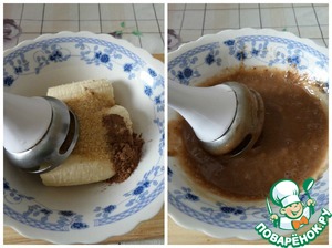 • Банан, 1 ст. л. сахара и какао пюрируем блендером.