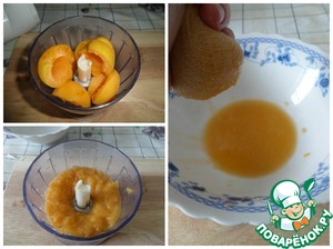 • У абрикосов удаляем косточки и измельчаем в блендере. С помощью марли отжимаем сок.