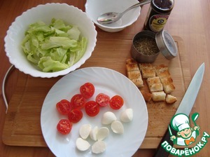 Ингредиенты для «Салат с моцареллой и сухариками»: