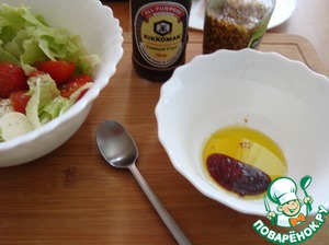 Делаем заправку к салату. В чашку наливаем оливковое масло. -