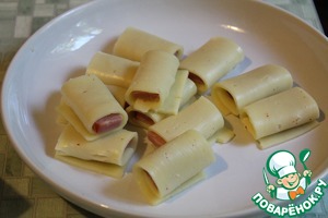 - Сыр твердый (пластинами, одна пластина на два рулетика)