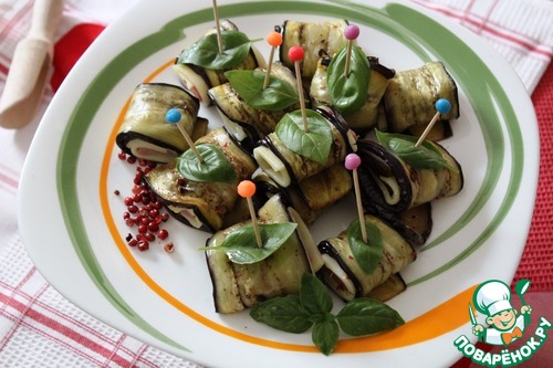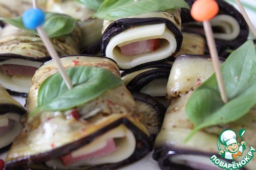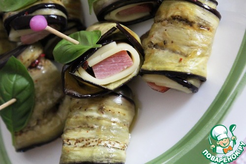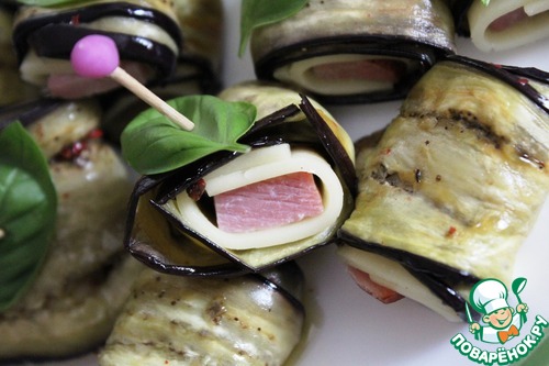 Рецепт «Рулетики из баклажанов с сыром и ветчиной»: