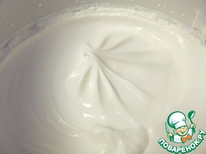 Сливки взбиваем до мягких пиков и убираем в холодильник