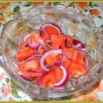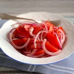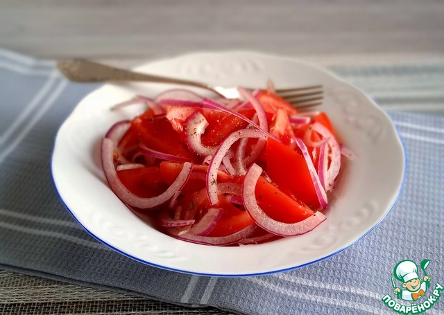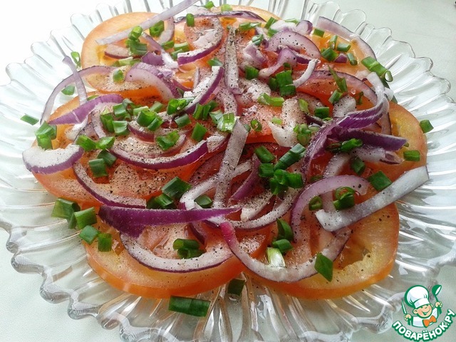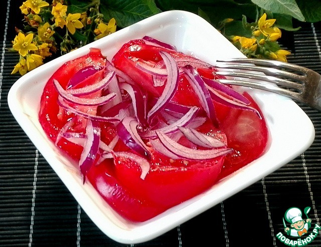 Салат фактически состоит всего из двух ингредиентов. Я делаю этот салат, когда начинается сезон вкусных южных помидор! Летом не хочется тяжелой пищи, поэтому "Сеньор Помидор" частый гость на нашем столе. Он прекрасно подходит к мясным, рыбным и куриным вторым блюдам.