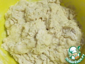Замешиваем негустое тесто. Всю муку добавлять не нужно. Ее можно будет добавить, когда будем вымешивать тесто.