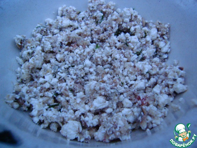 С консервов слить масло и размять вилкой. Я взяла "Сардину". Творог также размять вилкой и смешать с рыбой. Если творог слишком сухой добавьте масла с консервов, я этого не делала.