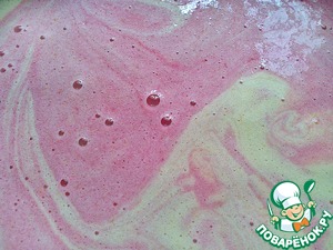Полученный свежевыжатый сок из смородины добавить к бисквитной заливке и перемешать.