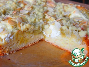 Этот пирог меня очаровал своей нежностью и неповторимым вкусом. Легкое, как пух, тесто и двойная начинка, аромат лимона и ванили. Не очень приметный с виду, скрывающий свое истинное содержание под покровом нежного штрейзеля и лепестками миндаля, этот поистине элегантный пирог откроет вам море вкуса и аромата. Попробуете кусочек, и рука непроизвольно потянется за следующим... Заходите, угощайтесь. Обещаю, что не пожалееете!