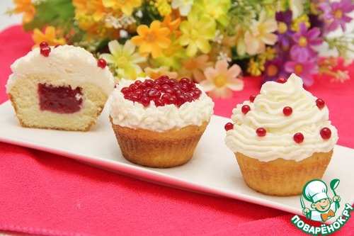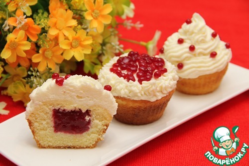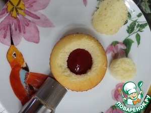 Ножом или формочкой вынуть часть сердцевины кексов. В лунку положить ягодную начинку.