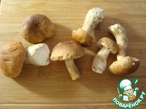 Берём белые грибы. Чистим их, моем и сушим от влаги бумажным полотенцем.