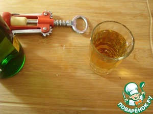 Приготовила вино белое, чтобы залить грибы на сковороде.