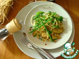 Салат с белыми грибами и спагетти