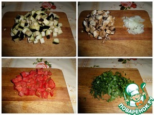 Все овощи нарезаем кубиками. Измельчаем зелень.
