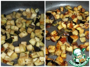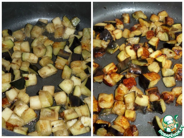 На оставшемся масле ( 2 ст. л.) обжариваем баклажаны. Выкладываем на салфетку, убирая лишнее масло.
