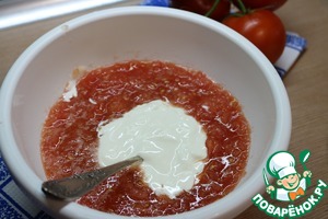 В томатный сок добавляем сметану.
