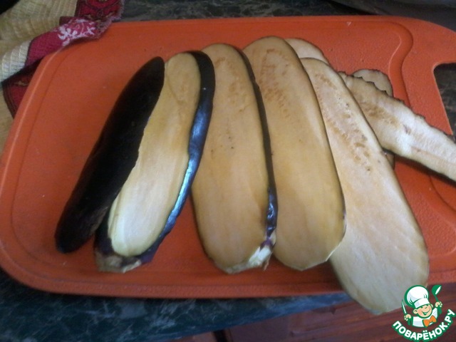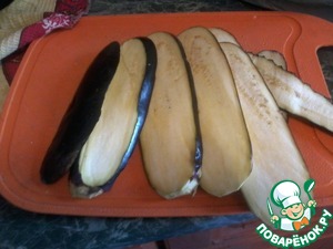 Нарезаем баклажан вдоль полосками 2-3мм
