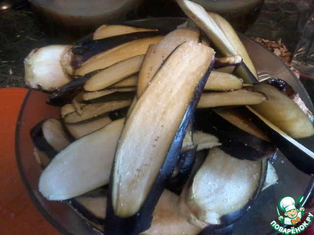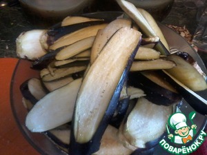 Здесь главное четкий алгоритм действий, и что бы все было под рукой. Баклажаны жарим по 3 - 4 полоски
