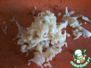 Чеснок трем на мелкой терке или продавливаем через прес
